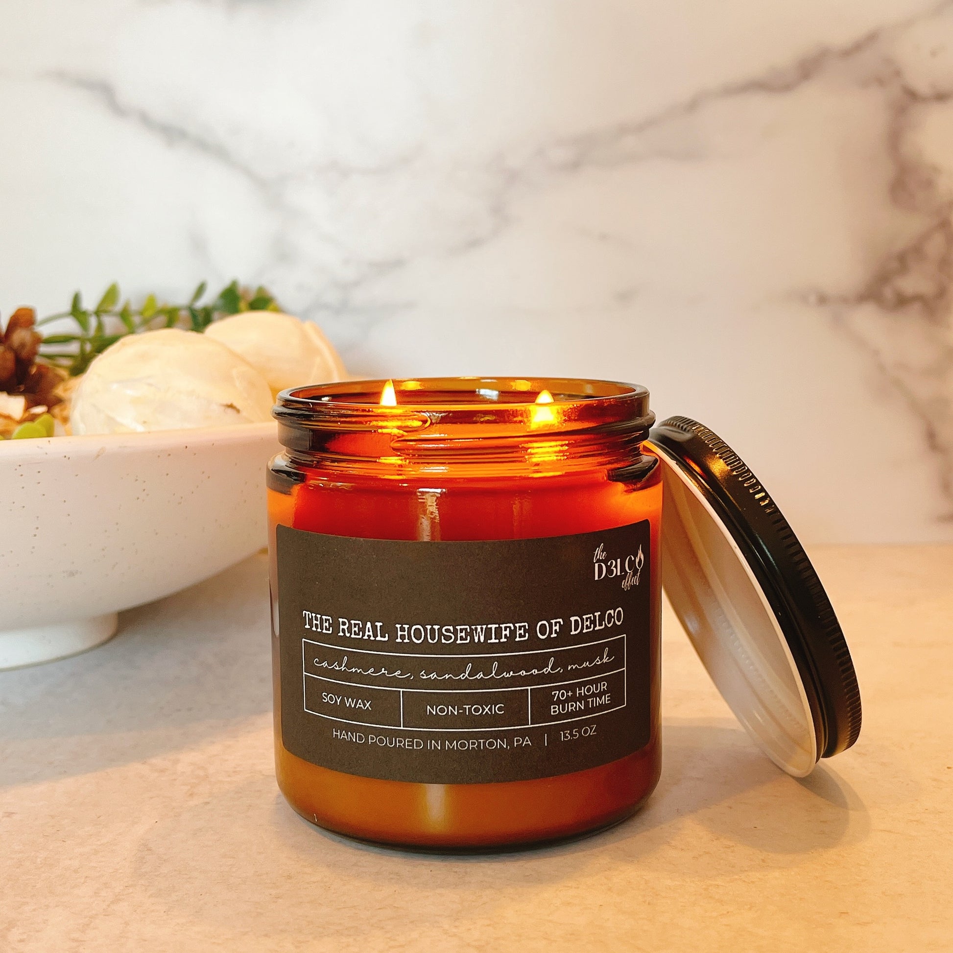 Delco drama meets suburban chic — a bold blend of velvet cashmere, layered over a base of smooth sandalwood and sensual musk. This candle is for the woman who knows every back road, every secret, and every bit of neighborhood tea.